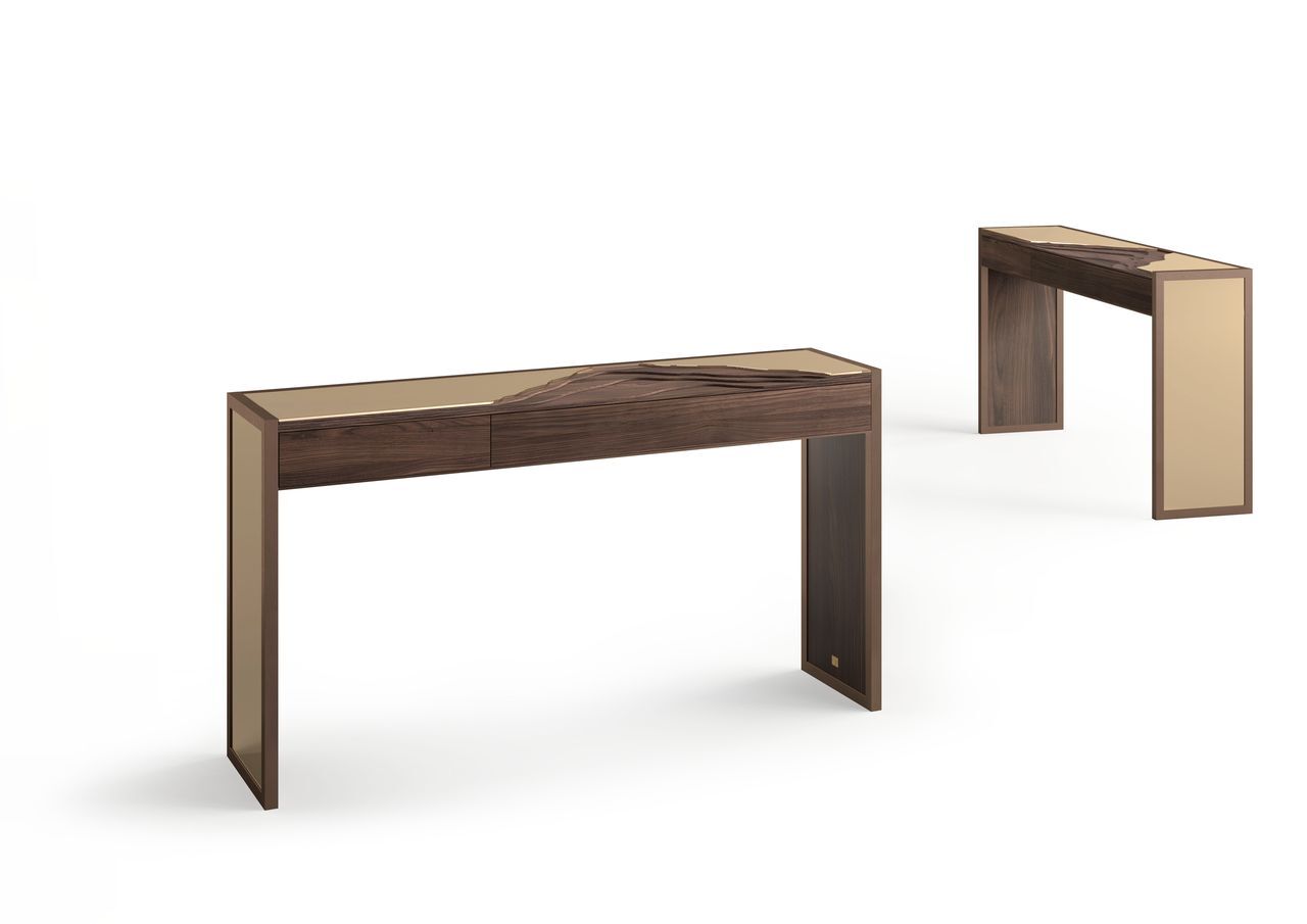 Безусловно, витрины и низкая тумба DUNE с массивными основаниями из мрамора и стеклянным корпусом. Это функциональная скульптура, вдохновлённая пейзажами пустыни.