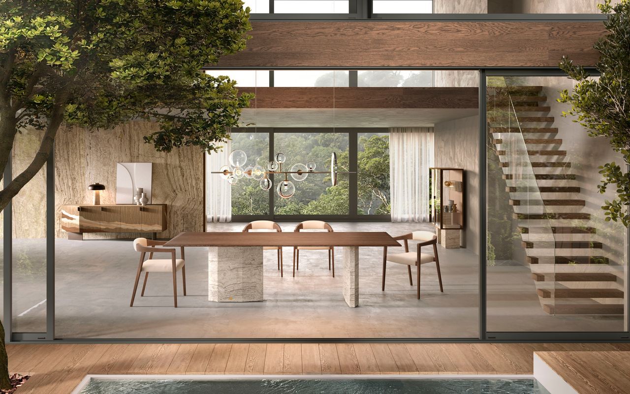 Буфет и стол Tara — образец идеального баланса между лаконичность, характером и роскошью. Чистые линии, мраморные основания и деревянные инкрустации, выполненные вручную опытными мастерами.