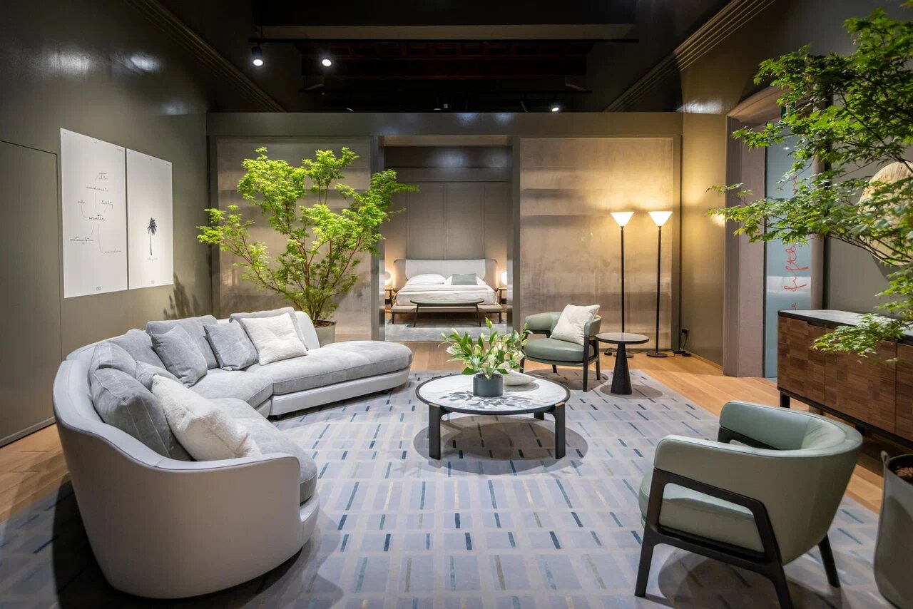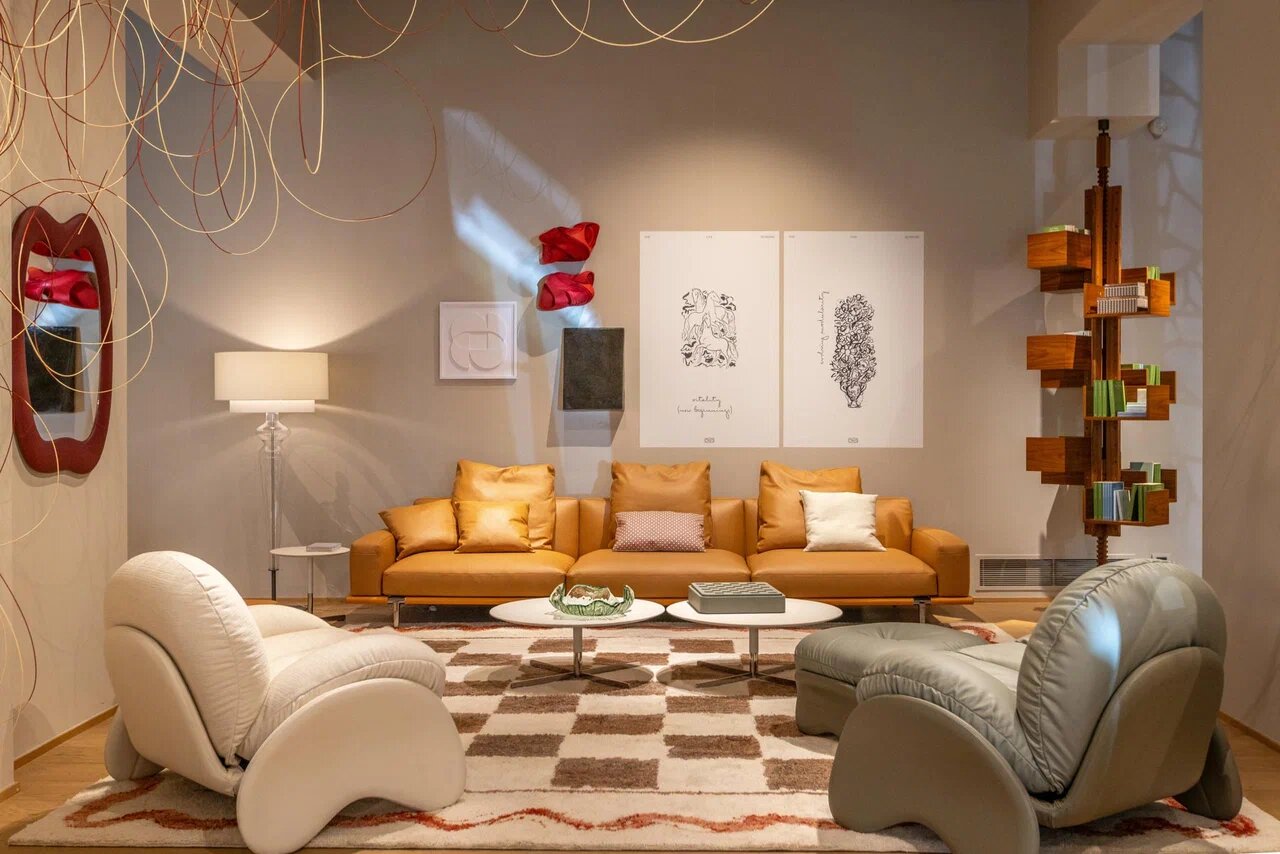 Среди ключевых новинок 2025 года — юбилейная лимитированная версия кресла Dezza, созданного итальянским мэтром Джо Понти в 1965 году. Эта икона модернизма отмечает 60-летие эксклюзивным тиражом в прочной коже Pelle Frau®. Ей противопоставлен диван Blisscape от дуэта Ludovica + Roberto Palomba. Его название, образованное от слов «блаженство» (bliss) и «побег» (escape), точно отражает концепцию: навеянный песней Лу Рида «Perfect Day», он предлагает умиротворение и бегство от суеты, дополненное встроенным механизмом регулировки.