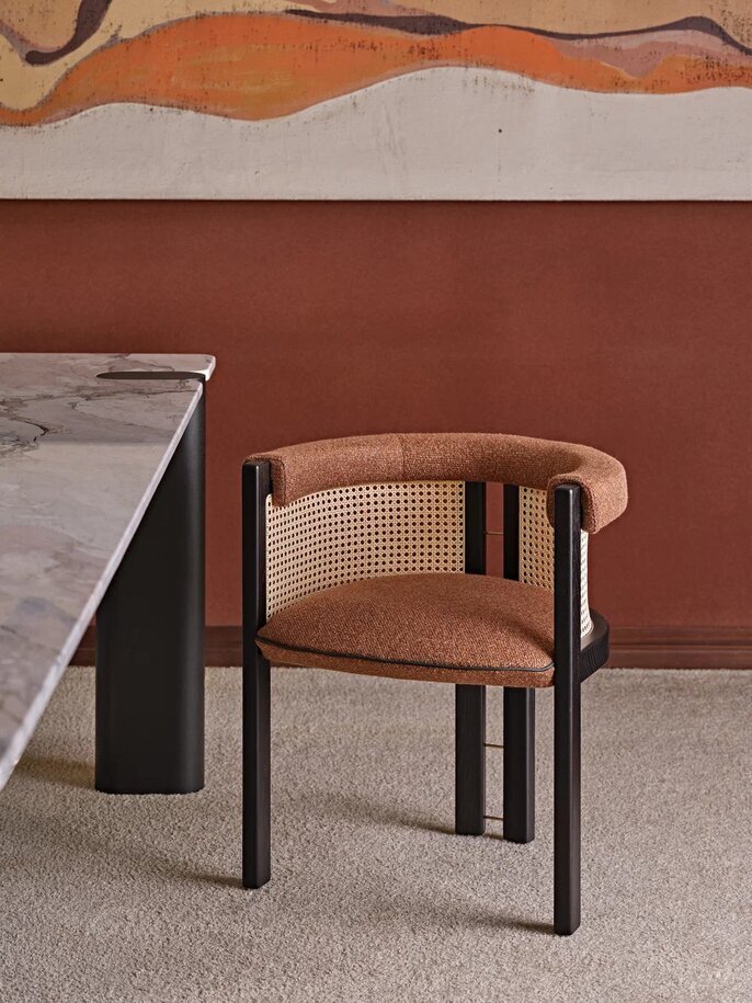В основе дизайна кресла Onika лежит баланс мягких и жестких линий. Дизайнеры сочетают строгий деревянный каркас с обволакивающей формой сиденья и обивкой из натуральной ткани.
