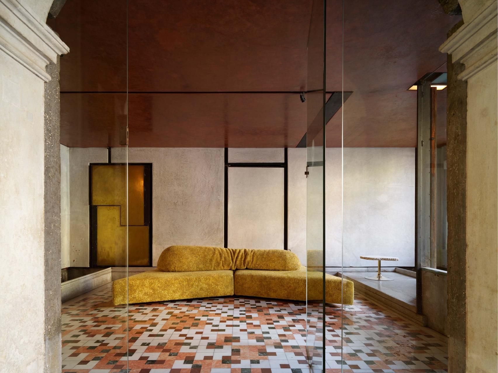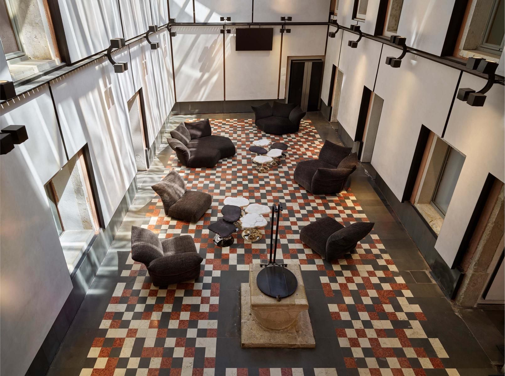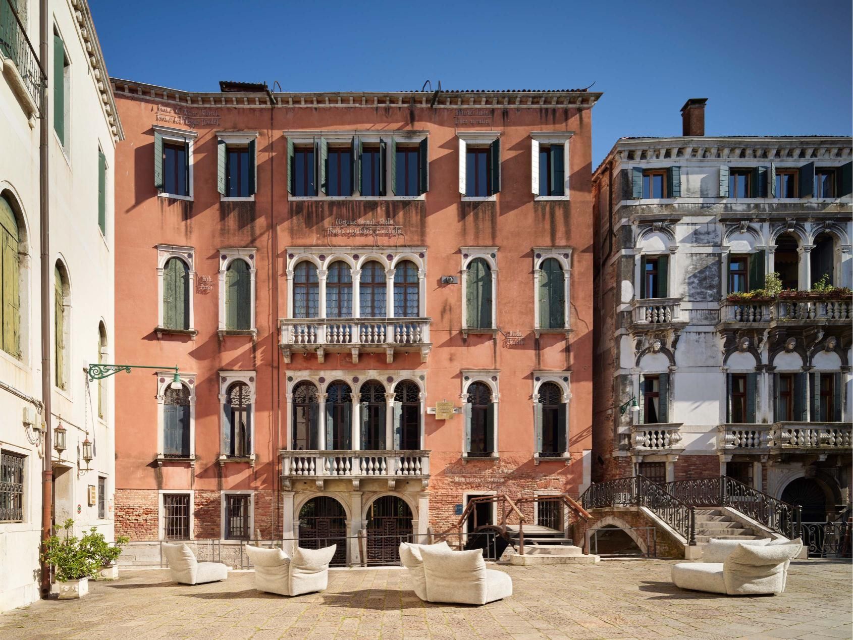 Исходной точкой для проекта стала архитектура самого фонда. Работы Карло Скарпы, в которых вода лагуны становится частью здания, а сад формирует интимное открытое пространство, демонстрируют этот принцип на структурном уровне. Эту философию продолжает и мебель Edra, представленная в палаццо: ее предметы функционируют как гибкие системы, которые выстраивают связи между человеком и окружающим контекстом.
