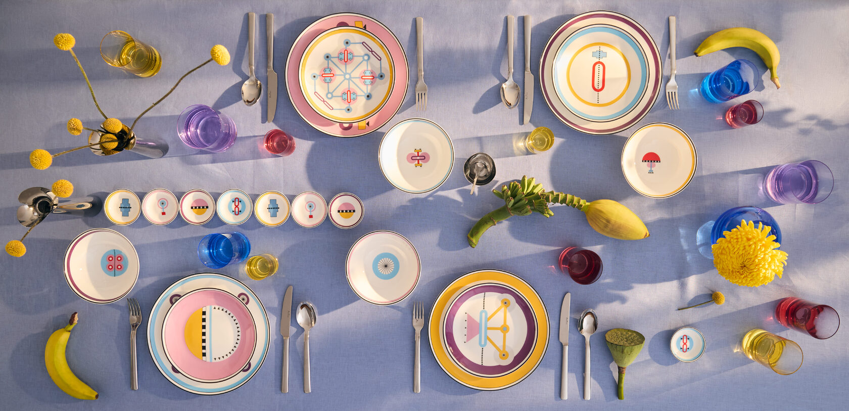 Коллекция, созданная дизайнером Наташей Обуховой, обращается к наследию легендарной группы Memphis и её лидера Этторе Соттсасса. Яркий, почти бунтарский декор с уникальным рисунком на каждой тарелке передаёт энергию и свободу того времени. Как рассказывает автор, толчком к созданию сервиза послужил… план парковки, разработанный Соттсассом. Его графическая красота вдохновила на переосмысление элементов в духе хулиганского и задорного стиля «Мемфис».