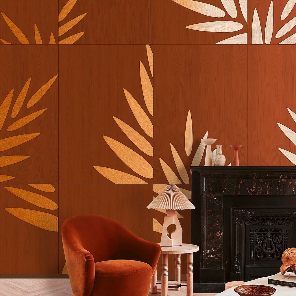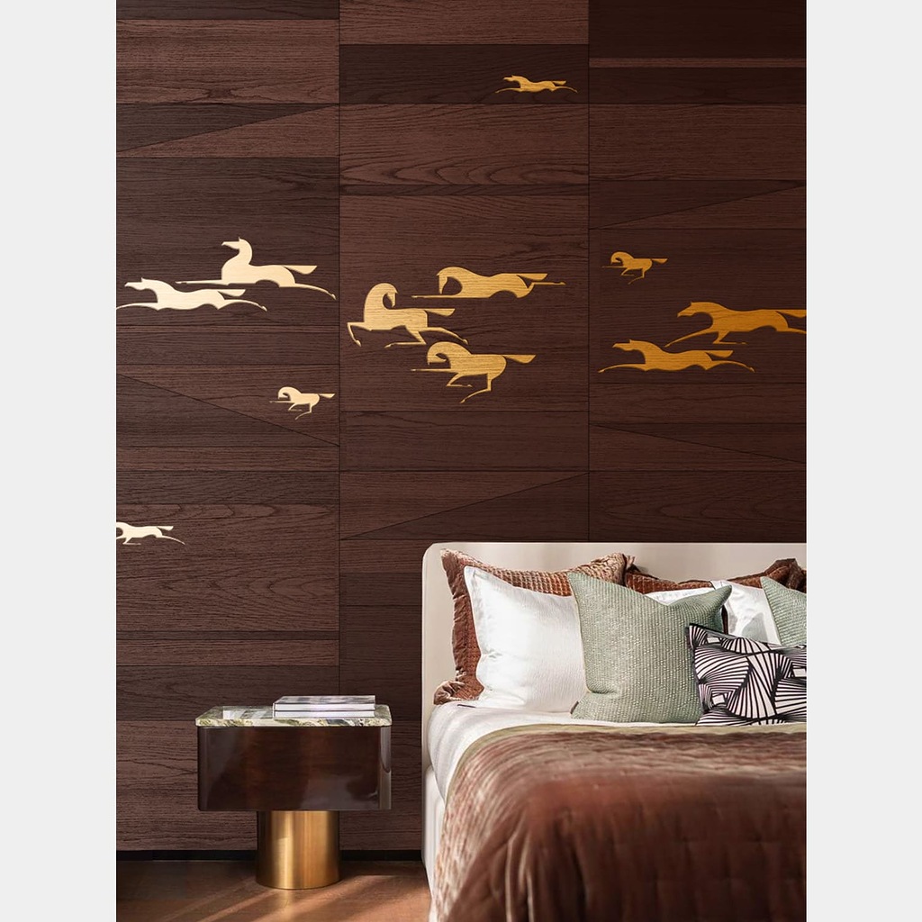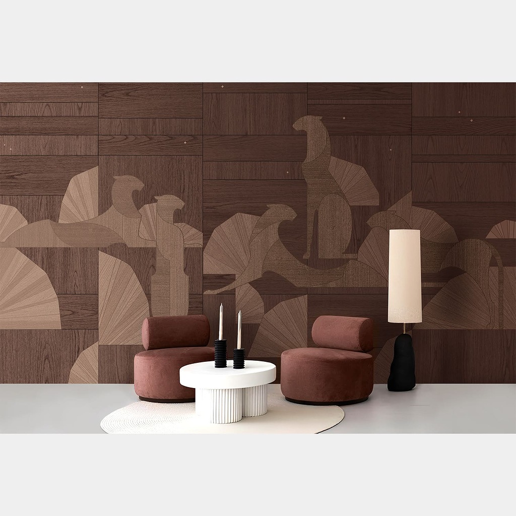 Панели выполнены в технике маркетри и могут интегрироваться в интерьер как самостоятельные арт-объекты, так и использоваться на фасадах мебели, дверях или в составе комплексных решений.