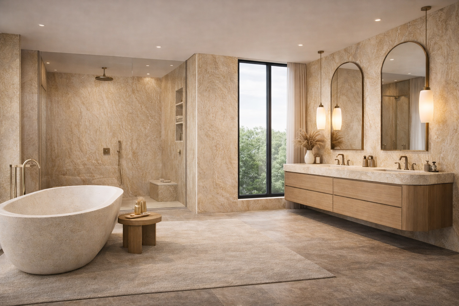 Коллекция 258512 виртуозно воссоздаёт фактуру и эстетику натурального травертина. Благодаря печати высокого разрешения панели точно передают сложный рисунок и благородный рельеф поверхности камня. Коллекция 25801 посвящена природной красоте дерева и включает декоры, имитирующие различные породы древесины с их уникальным, живым рисунком текстур.