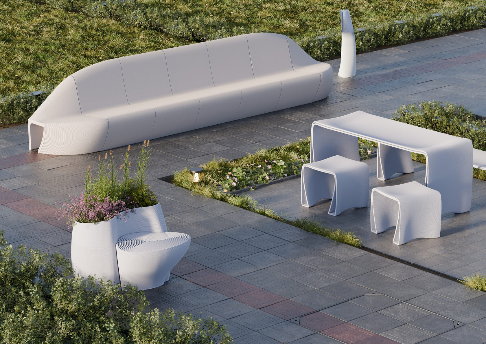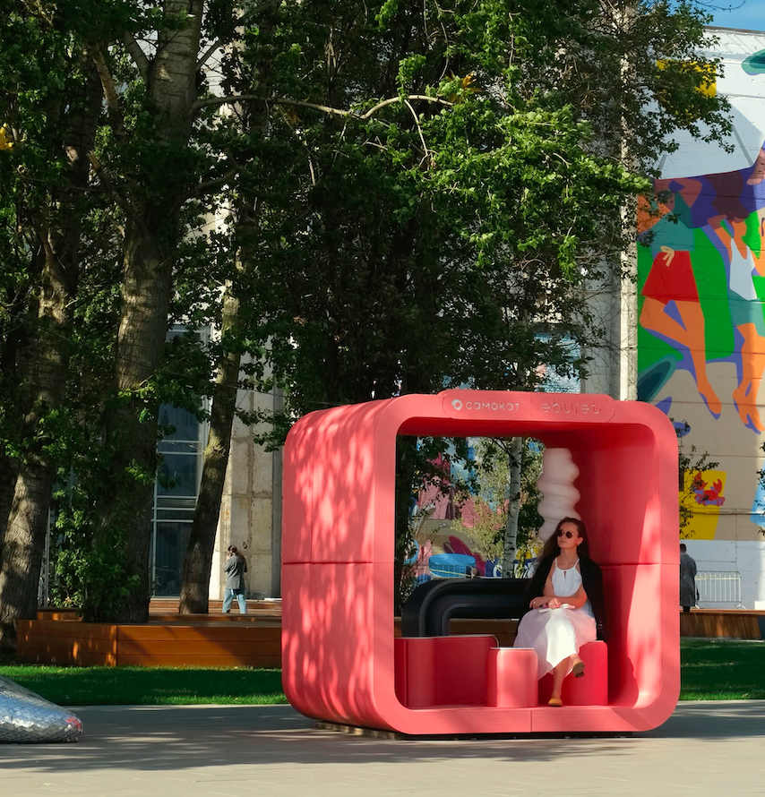 Бренд Eburet запустил направление Urbis — мебель и элементы благоустройства, созданные на 3D-принтере для города. Каждый предмет содержит переработанный пластик и готов к следующему превращению в новый объект после срока эксплуатации.