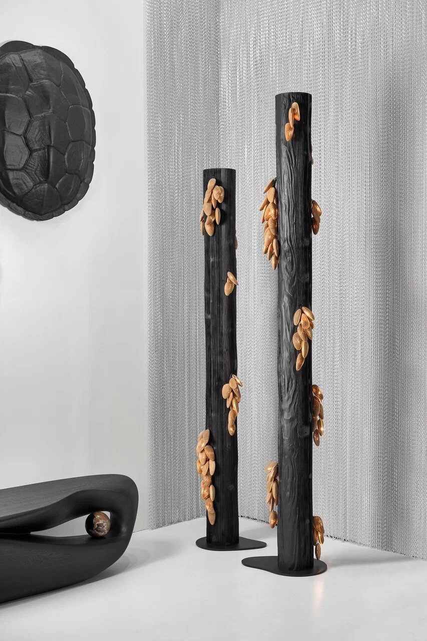 Сегодня бионические формы стали едва ли не обязательным трендом в дизайне. Плавные линии и природные силуэты можно встретить у каждого второго бренда. Но Woodzenart нырнул "глубже" и представил на ARTDOM 2026 коллекцию авторских объектов «Глубина», посвященную морской фауне. Вдохновением для нее стала архитектура биологических форм океана: черепах, китов и мидий. Дизайнеры продолжают подводную тему, начатую в предыдущих работах — панно и скульптурах скатов.