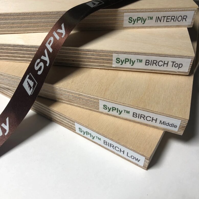 Производство опирается на уникальное преимущество — использование северной березы, одной из самых прочных пород. Благодаря суровому климату и медленному росту деревьев её структура отличается высокой плотностью и мелкими годичными кольцами, что делает материал особенно прочным, стабильным и износостойким. Именно из нее создается фанера SyPly. Березовый шпон проходит лущение, сортировку и прессование под высоким давлением, формируя многослойный материал с уникальными свойствами.
