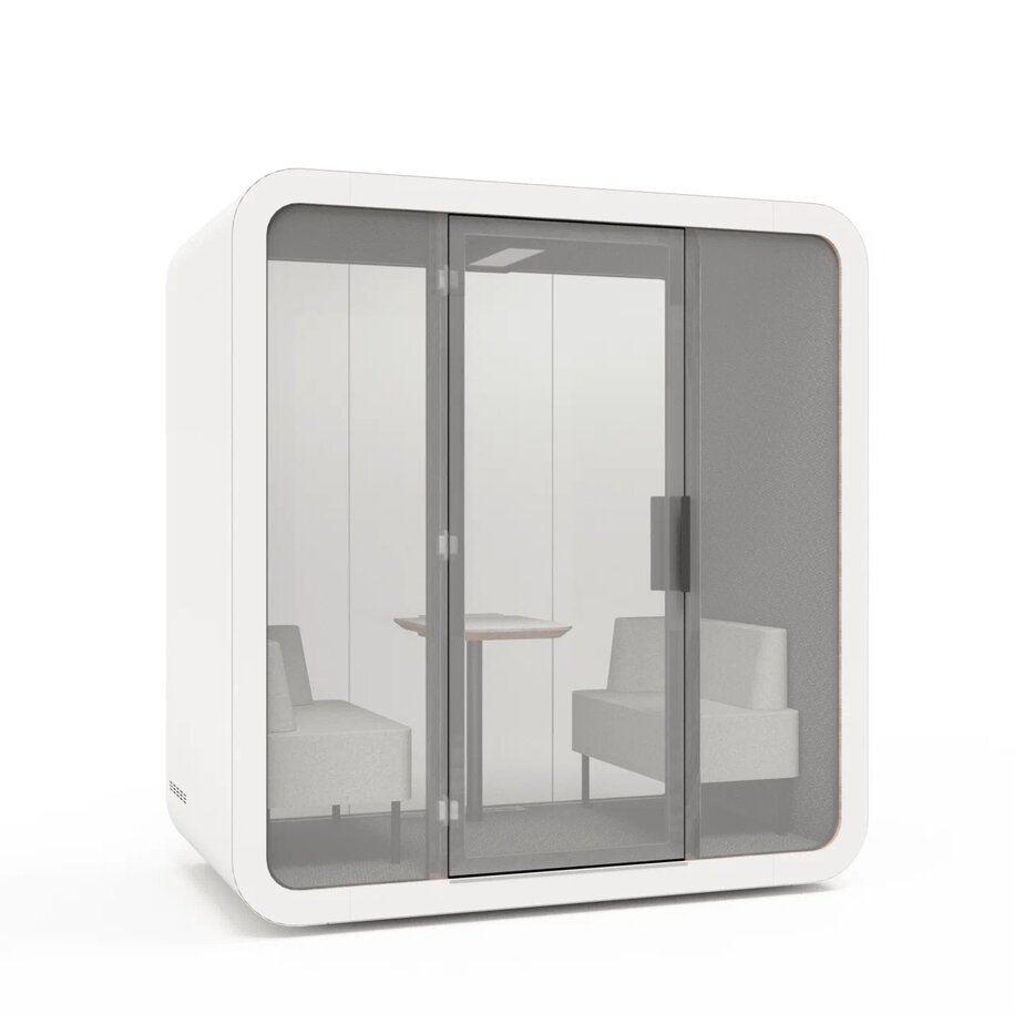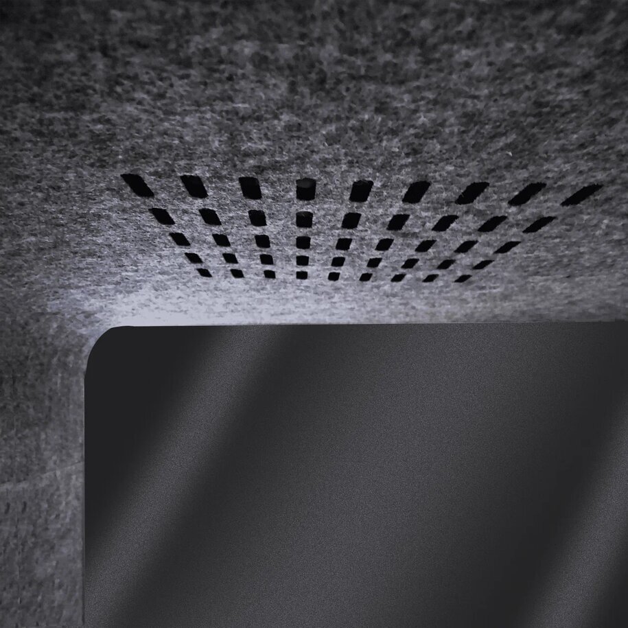 На сегодняшний день в серии одноместные и двухместные кабинки. Базовые цвета — черный и белый, но технические возможности позволяют создать кабинки точно под интерьер. Внутри много места — хватает и для полноценного стола, и для комфортной мягкой мебели. В кабинке легко дышится благодаря качественной системе вентиляции. Самое важное для акустической кабинки: полная звукоизоляция. Ее обеспечивает толстый акустический уплотнитель и специальный войлок в отделке. Как всегда, особое внимание к деталям: эргономичная дверь оснащена магнитным доводчиком и ручкой PUSH/PULL, а LED освещение работает по датчику движения. Предусмотрены розетки на все случаи жизни: 220В, USB, Rj-45.